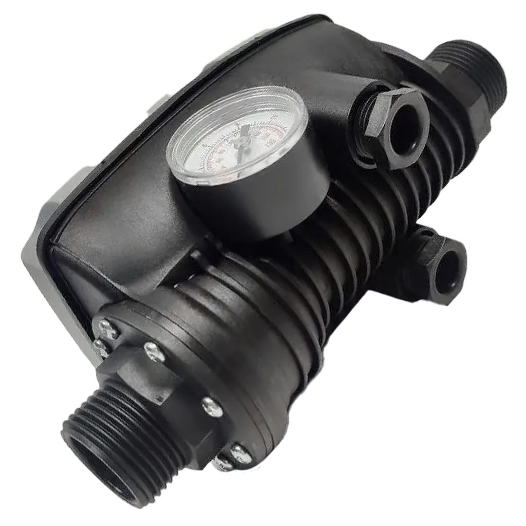 Реле давления Italtecnica BRIO2000 применяется для автоматического включения и выключения однофазных электронасосов мощностью до 2 л.с. Полностью заменяет традиционно используемые автоматические станции водоснабжения, состоящие из реле давления и гидроаккумулятора. Включает электронасос после падения давления в системе (открытые краны) и выключает его, когда прерывается поток воды при максимальном значении давления для электрического насоса (краны закрыты). Кнопка RESET (сброс) 2. Индикатор остановки (сухой ход) 3. Индикатор напряжения сети 4. Клеммы подключения насоса 5. Винт для регулировки давления срабатывания 6. Вход с резьбовым соединением 1" резьба="" наружная="" предзаказу="" внутренняя="" вращающая="" Подключения="null" питания="" Выход="null" с="" резьбовым="" соединением="" Манометр="null" в="" версии="">