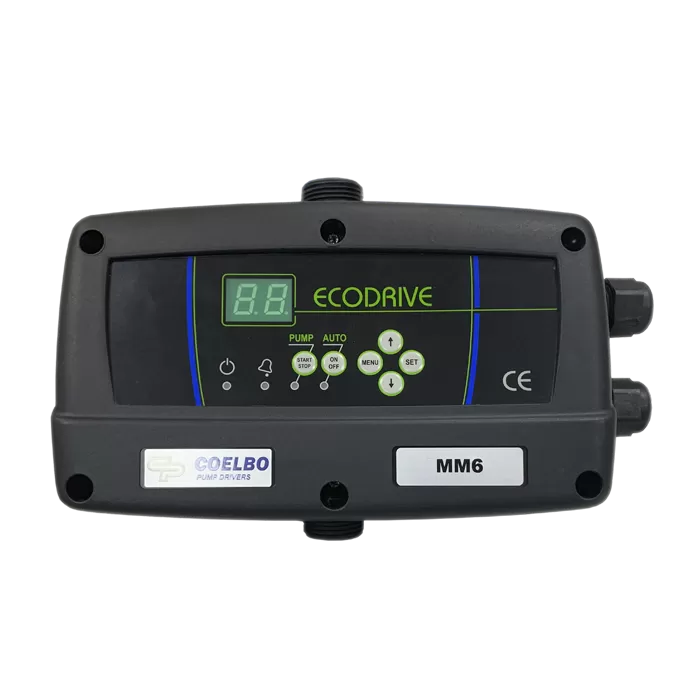 ECO DRIVE электронный контроллер с частотным преобразователем для управления и защиты однофазных насосов водоснабжения с максимальным токопотребпением до 9 Ампер.