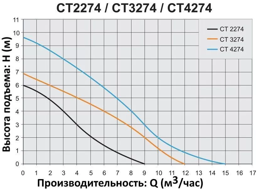 Графические характеристики дренажного насоса ELPUMPS CT 4274 INOX NEPTUN