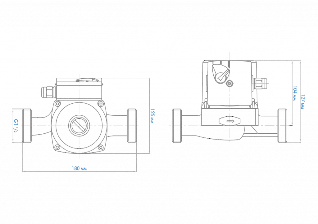 - Установочный размер между присоединительными фланцами — 180 мм