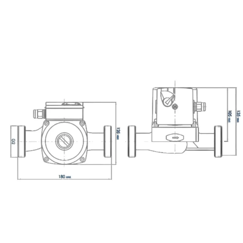 - Установочный размер между присоединительными фланцами составляет 180 мм, что обеспечивает совместимость и удобство при монтаже