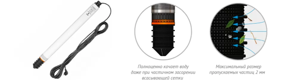- Запрещается использовать насос, если проток воды через него менее 3 л/мин.