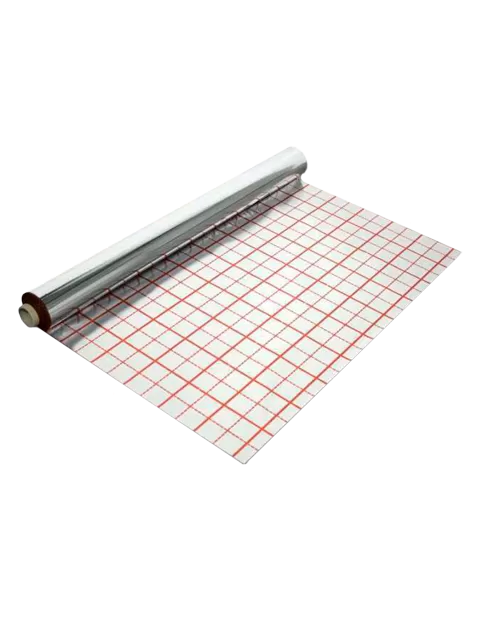 фольга обладает химической стойкостью, обеспечиваемой полипропиленовой пленкой, что гарантирует сохранность металлизации при постоянном взаимодействии с бетоном. Нанесенная на изоляционную пленку разметка значительно упрощает процесс монтажа системы отопления, включая теплый пол.