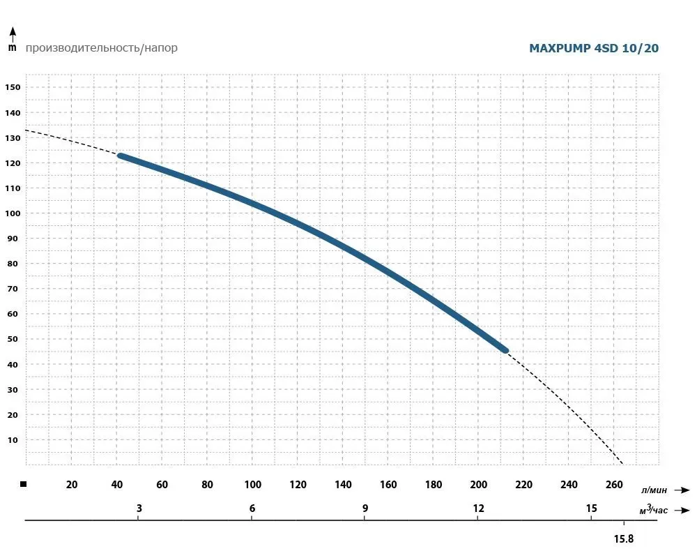 Максимальное количество метров на которое насос может поднять воду.