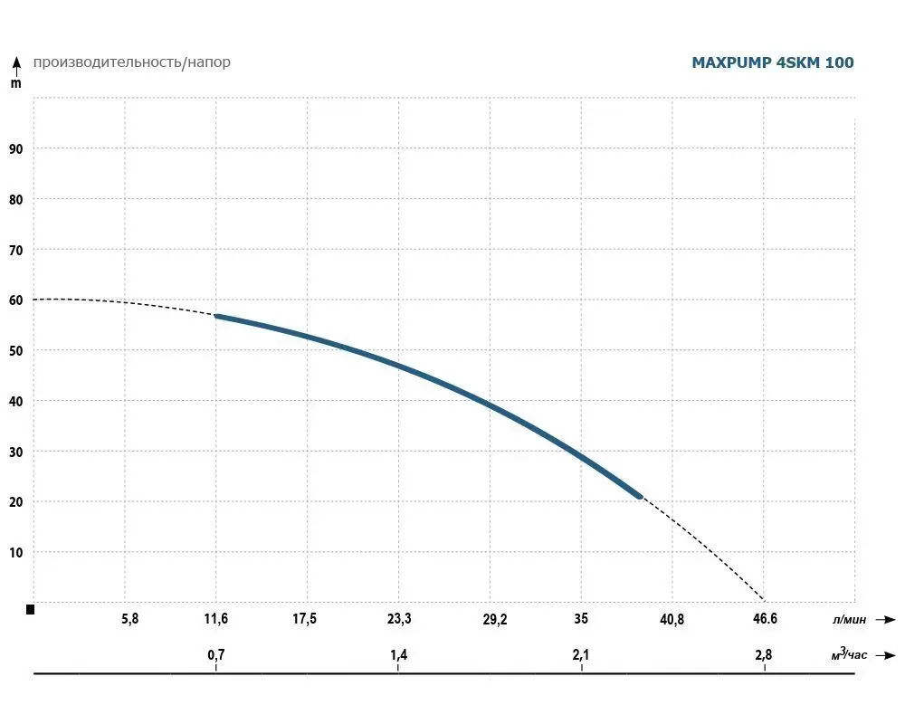 - Максимальный напор: 60 м