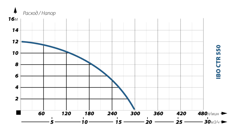 Графические характеристики фекального насоса IBO CTR 550