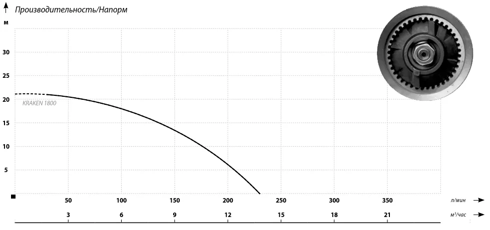 Графические характеристики фекального насоса IBO KRAKEN 1800