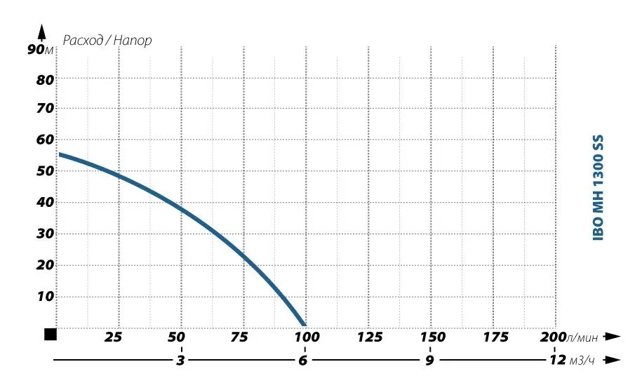 Насосная станция IBO MH 1300 INOX 50л исполнена на базе многоступенчатого самовсасывающего центробежного насоса серии MH. Насосная станция MH доступны в двух вариантах: с лопастными колесами из нержавеющей стали (в названии товара должно быть указано INOX) или с лопастными колесами из норила. Корпус насосной станции IBO MH 1300 INOX 50л выполненный из нержавеющей стали. Тихая работа насоса позволяет устанавливать их в доме. Насосы оснащены тепловой защитой, установленной в обмотке двигателя. Мощность электродвигателя составляет 1300 Вт, максимальный напор 55 м и максимальная производительность 6 м³/час. Объем накопительного бака 50 л. Производительность в 6 м³/час позволяет запитать от насосной станции дом и не только, хватит и для организации полива и подключения бани. Насосная станция отлично подойдет для поднятия давления в центральной системе водоснабжения. Но для использования в системе повышения давления насосную станцию IBO MH 1300 INOX 50л необходимо доукомплектовать реле сухого хода.