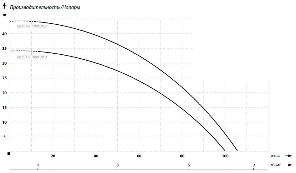 Графические характеристики дренажного насоса MULTI IP 1000 INOX