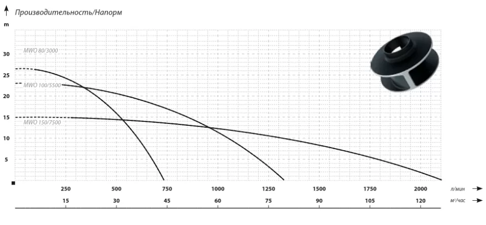 Возможность насоса пропускать через гидравлическую часть определенный размер частиц.
