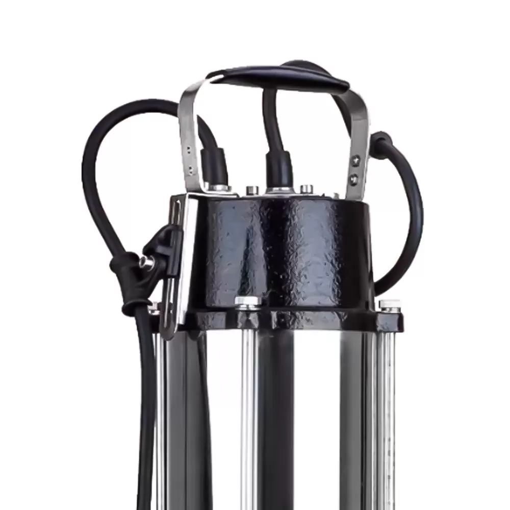 Защита от попадания жидкости: Электродвигатель размещен в закрытом кожухе, что защищает его от попадания жидкости. Это повышает безопасность и предотвращает коррозию электродвигателя. Рабочее колесо и измельчитель: Насос оснащен рабочим колесом, которое создает поток жидкости. Кроме того, на валу электродвигателя имеется вращающийся нож, предназначенный для измельчения волокнистых включений в жидкости. Это помогает предотвратить блокировку насоса.