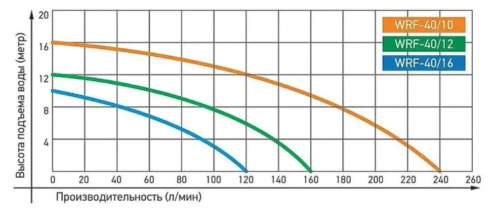 Графические характеристики циркуляционного насоса JEMIX WRF 40/10