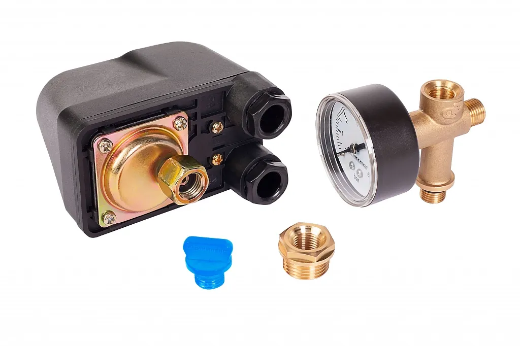 Визуальный контроль давления в системе водоснабжения позволяет осуществлять манометр с пределом измерения 6 бар.