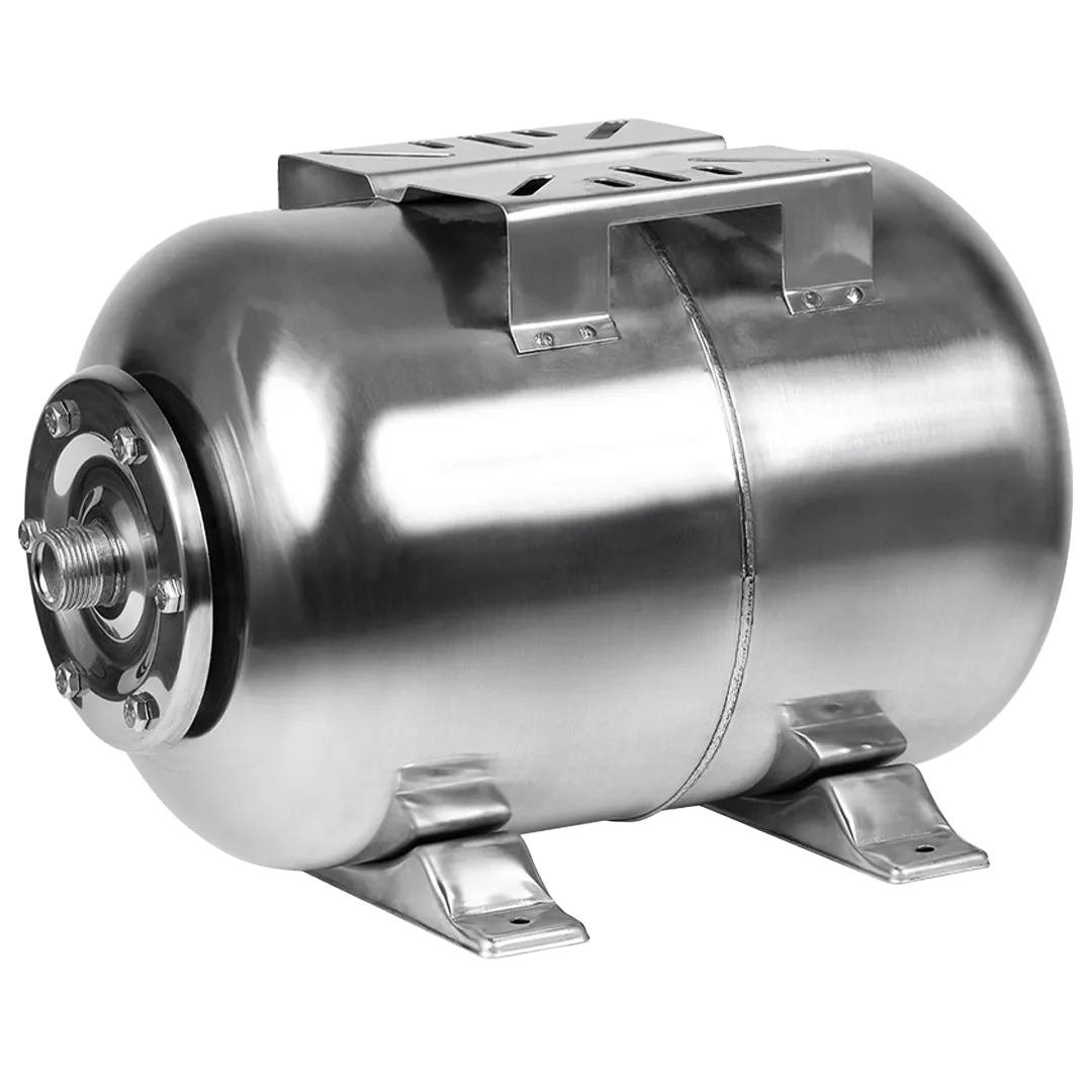 Гидроаккумулятор для воды MAXPUMP H-50 горизонтального исполнения предназначен для систем холодного водоснабжения. Гидроаккумулятор служит для накапливания запаса воды объемом до 50 литров, снижения вероятности возникновения гидравлических ударов в системе, а также сокращения количества пусков насоса, тем самым продлевая срок службы насоса. Конструкция гидроаккумулятора представляет собой стальной корпус, окрашенный в зеленый цвет, со сменной мембранной, изготовленной из высококачественного материала EPDM, опорными ножками у основания бака, воздушным клапаном и площадкой для установки насоса. Горизонтальные гидроаккумуляторы, благодаря установочной площадке, расположенной на поверхности бака, могут использоваться с поверхностными насосами.