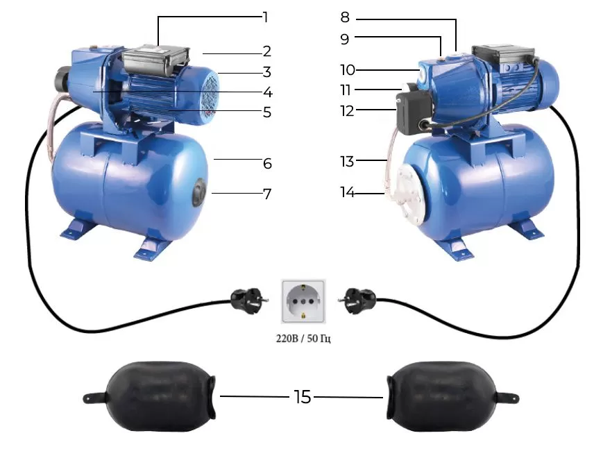 Автоматическая насосная станция JEMIX ATJET-80 представляет собой высокоэффективное устройство, разработанное специально для обеспечения автоматического и бесперебойного водоснабжения загородных домов. Она также может использоваться для наполнения или осушения различных резервуаров, полива садовых участков и газонов. В комплект поставки входят реле давления и гидроаккумулятор, которые играют важную роль в функционировании станции. Реле давления отвечает за контроль и поддержание заданного давления в водопроводной сети, что позволяет обеспечивать постоянное и стабильное водоснабжение. Гидроаккумулятор используется для аккумулирования и сохранения давления, что позволяет увеличить эффективность работы системы и предотвратить частые включения и выключения насоса.