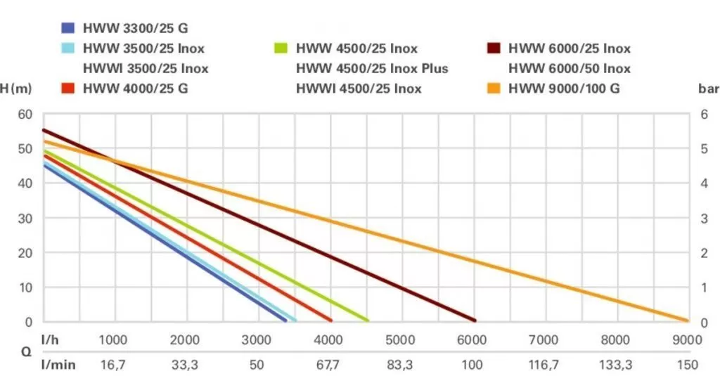 Графические характеристики насосной станции Metabo HWW 4500/25 Inox