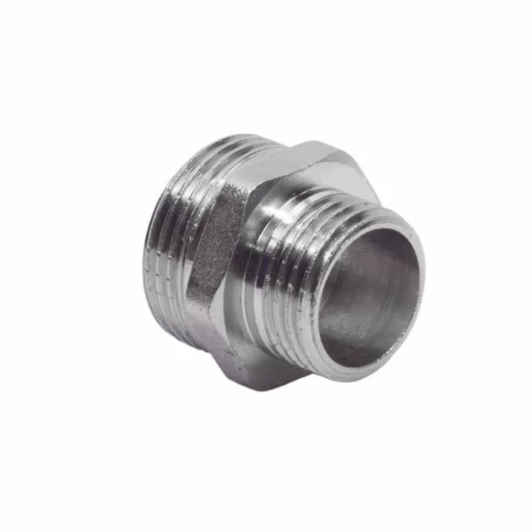 Ниппель переходной AQUALINK 3/4"М х 1 1/4"М – специальный соединительный элемент, цилиндр, на два конца которого снаружи нанесена резьба, что предусматривает монтирование системы путем вкручивания, используются для создания разъемных резьбовых соединений на трубопроводах холодного питьевого, хозяйственного и горячего водоснабжения, отопления, сжатого воздуха и на технологических трубопроводах, транспортирующих газы и жидкости, неагрессивные к материалу соединителей. Посередине данной конструкции для удобства присоединения предусмотрена шестигранная гайка, поэтому монтаж легко можно осуществить с помощью обычного гаечного ключа. Резьбовое присоединение ниппелей характерно для соединения в тех местах, где предусмотрена неоднократная разборка конструкции или же исключена работа с открытым пламенем. Применяется для соединения деталей трубопроводов с разной резьбой или для перехода с большей резьбы на меньшую.