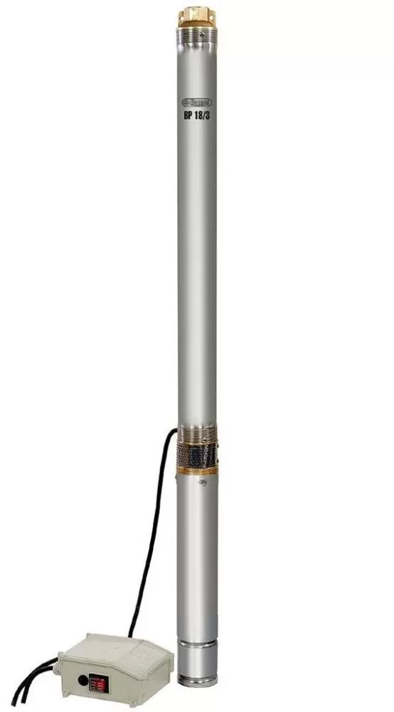 Глубинный насос ELPUMPS BP18/3 предназначен для забора воды из скважин, шахтных колодцев, накопительных резервуаров или открытых водоемов. Производительность насоса - 50 л/мин, что соответствует стандарту бытового водоснабжения. Механизм помпы состоит из 18 рабочих колес из высокопрочного полимера NORYL, благодаря чему инженерам удалось сократить диаметр корпуса до 3" без потери производительности. Забор воды осуществляется в центральной части корпуса, между двигателем и блоком импеллеров, что позволяет избежать засасывания в механизм донного ила. Допускается использование насоса для работы только с чистой водой, максимальное содержание твердых частиц в которой не превышает 40г/куб.м. Рекомендуемая температура воды - от 0 до 35°С - позволяет обеспечить нормальное охлаждение двигателя, на случай превышения температурного лимита, в корпус встроено защитное термореле. Скважинный насос выполнен в прочном и химически инертном корпусе из нержавеющей стали, благодаря чему компоненты устройства надежно защищены от воздействия внешней среды. Кожух двигателя гидроизолирован по стандарту IPX8 и соответствует 1 классу электрозащиты. В верхней части корпуса расположены отверстия для крепления монтажного троса.