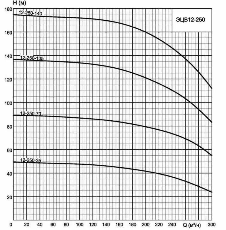 Графические характеристики ЭЦВ 12-250-140 нро