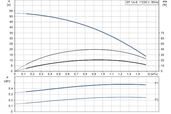 Насос Grundfos SP 1A-9 создан с применением новейших гидравлических технологий. Grundfos SP 1A-9 созданные специально для того, чтобы обеспечивать максимальную эффективность в периоды высокой нагрузки, насос имеет низкую стоимость и высокую надёжность эксплуатации вне зависимости от вида назначения. Grundfos SP 1A-9 обеспечивает высокую эффективность, высокое сопротивление абразивному износу (песку и иным абразивам), защиту от перегрева двигателя и простоту технического обслуживания. Также доступна готовая к применению система контроля и управления, предназначенная для постоянной оптимизации работы насосной системы. Максимальная производительность насоса 1.4 м3/час, максимальный напор 53 м при мощности электродвигателя 370 Вт. Насос работает от сети 220 в. Гарантийный срок на насос Grundfos SP 1A-9 составляет 2 года.