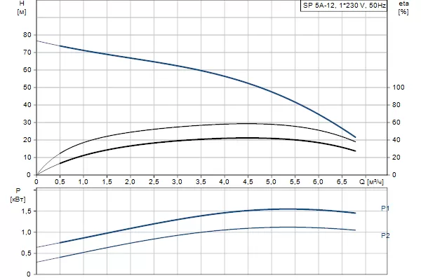 Насос Grundfos SP 5A-12 создан с применением новейших гидравлических технологий. Grundfos SP 5A-12 созданные специально для того, чтобы обеспечивать максимальную эффективность в периоды высокой нагрузки, насос имеет низкую стоимость и высокую надёжность эксплуатации вне зависимости от вида назначения. Grundfos SP 5A-12 обеспечивает высокую эффективность, высокое сопротивление абразивному износу (песку и иным абразивам), защиту от перегрева двигателя и простоту технического обслуживания. Также доступна готовая к применению система контроля и управления, предназначенная для постоянной оптимизации работы насосной системы. Максимальная производительность насоса 7 м3/час, максимальный напор 75 м при мощности электродвигателя 1100 Вт. Насос работает от сети 220 в. Гарантийный срок на насос Grundfos SP 5A-12 составляет 2 года.