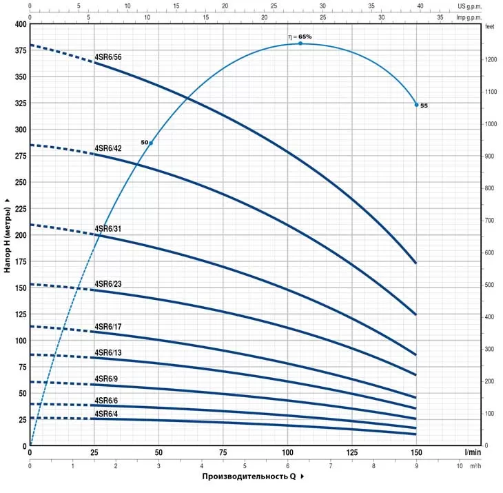 Глубинный насос Pedrollo 4SR6/23-P, отличается объективной ценой и надежной работой всех исполнительных механизмов. Насос Pedrollo 4SR6/23-P достаточно простой в эксплуатации и обслуживании, поэтому отлично подходит как для домашнего, так и промышленного применения.В основе работы Pedrollo 4SR6/23-P лежит конструктивно простой, но функционально успешный многоступенчатый центробежный принцип. Электрический двигатель подключается к агрегату через суппорт, в соответствии с нормативами международного стандарта NEMA. Мощность электродвигателя насоса составляет 3000 Вт . И при таких показателях мощности насос обладает максимальным напором в 154 метров и максимальной производительностью 9 м3/час. Функционирование Pedrollo 4SR6/23-P идентично большинству устройств, основанных на центробежных механизмах подачи воды. Жидкость втягивается в корпус устройства благодаря центробежной силе, создаваемой рабочими колесами, которые также проталкивают воду через все тело насоса "диаметр насоса 4"", а затем в нагнетающий патрубок "диаметр патрубка 2"", через который вода и попадает к конечному потребителю. Главной особенностью насоса Pedrollo 4SR6/23-P является малый диаметр корпуса агрегата, а также то, что перекачиваемая вода не касается стенок двигателя. Между жидкостью и корпусом движущей установки располагается прослойка из технологического масла, которая и предотвращает попадание мелких частиц непосредственно в исполнительный механизм. В то время как охлаждение электропривода происходит за счет верхнего способа забора воды, т.е. перекачиваемая жидкость находится всегда выше уровня расположения двигателя. Насос питается от сети в 380 в и комплектуется кабелем 1.5 метров.