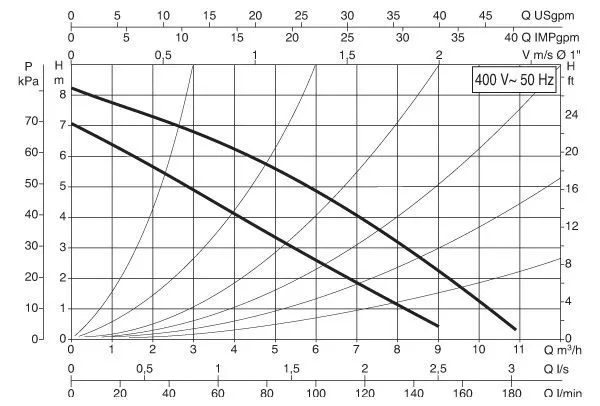 График характеристик циркуляционного насоса DAB B 80/250.40 T - 400 v">