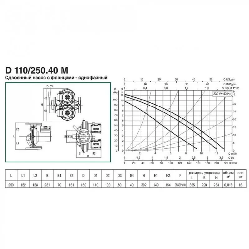 Циркуляционный насос DAB D 110/250.40 M предназначен для эксплуатации в системах отопления, где предъявляются повышенные требования к надежности. Отличительной чертой серии D является наличие второго дублирующего насоса, который автоматически включается в работу при поломке первого насоса. Таким образом в одном корпусе расположены сразу два отдельных насоса которые полностью дублируют друг друга. Присоединение насоса с помощью фланцев.