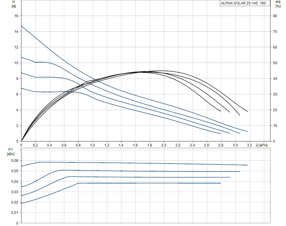 Циркуляционный насос Grundfos ALPHA SOLAR 25-145 180 предназначен для использования во всех видах тепловых солнечных систем с любой переменной (совпавшего потока) или постоянной скорости потока. ECM (электронно-коммутируемого двигателя) Насосы высокого КПД, такие как альфа солнечная энергия, не должна быть регулируемой скоростью с помощью внешнего регулятора скорости переменного или пульсирующего напряжения питания.