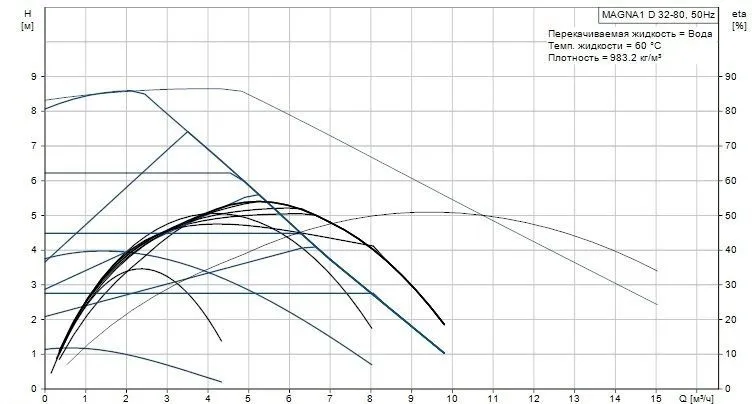 Циркуляционный насос Grundfos MAGNA1 D 32-80 180 может выступать в качестве: главного насоса, насоса для узлов смешения, насоса для контура поверхности нагрева, насоса для контура поверхности охлаждения. В отличие от насосов GRUNDFOS UPS, сдвоенный циркуляционный насос GRUNDFOS MAGNA1 D особо эффективен при работе в системах с переменным расходом. По сравнению со своим предшественником, GRUNDFOS MAGNA1 D имеет 9 режимов управления, которые позволяют подобрать наиболее оптимальный режим работы насоса в изменяющихся условиях эксплуатации, что способствует значимому снижению затрат на электроэнергию при эксплуатации насосов.