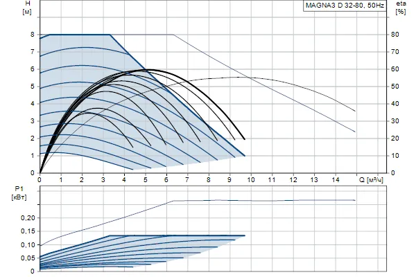 Сдвоенный циркуляционный насос GRUNDFOS MAGNA3 D 32-80 180 предназначен для циркуляции теплоносителя в системах отопления, где необходимо автоматическое регулирование напора насоса при изменении потребляемого расхода, если Вы хотите отказаться от дорогостоящих байпасных клапанов или другого подобного оборудования. Эти насосы также используются в системах ГВС.